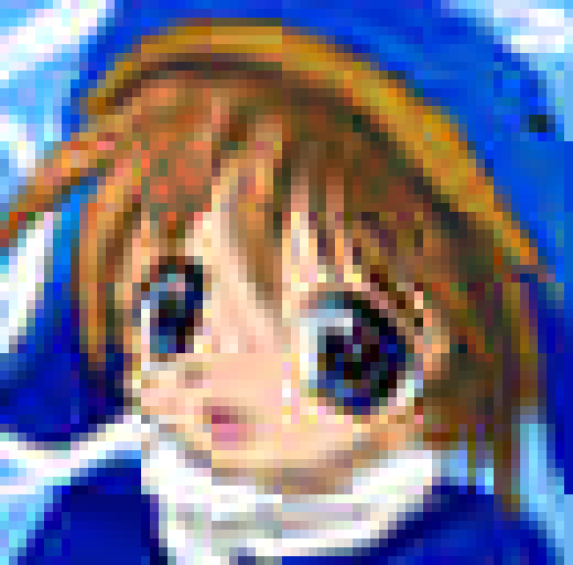 Wow! That certainly looks like JPEG compression to me! On a small image like this the "compressed" version actually does worse size-wise, but on a larger image, the compression can be upwards of 50% better than a PNG of the same image, and comes close to matching a JPEG in quality and size. JPEG actually performs some extra tricks to achieve a better size reduction, but that's not important here. Of course, my compression can be adjusted to not look so... bad. I just made it that bad for illustrative purposes, so you can easily see the 8×8 blocks.